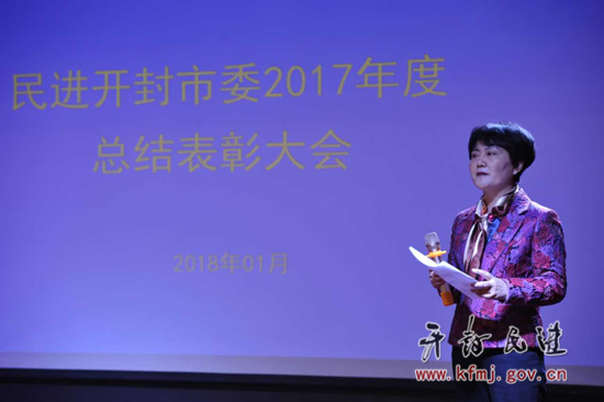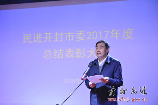 2018年1月6日,民进开封市委举行“砥砺奋进,执着前行”为主题的2017年度总结表彰大会。全国政协委员、河南大学校长、民进开封市委主委宋纯鹏,全国人大代表、河南省人民政府参事、民进开封市委原主委陈国桢,中共开封市委统战系统直属机关委员会书记金涛,开封市政协常委、开封大学副校长、民进开封市委副主委何世玲,开封市人大常委、民进开封市委专职副主委蒋中兴,开封市政协委员、开封市城乡一体化示范区法制办主任、民进开封市委副主委李谦,中共开封市委统战部党派科科长蒲勇,民进开封市委原专职副主委陈冠义,民进开封市委原专职副主委罗锐, 河南大学教育科学学院院长、教育总支主委汪基德,原民进开封市委委员、禹王台区政协副主席张斌出席会议。民进会员李玉昆、韩莎莎主持会议。